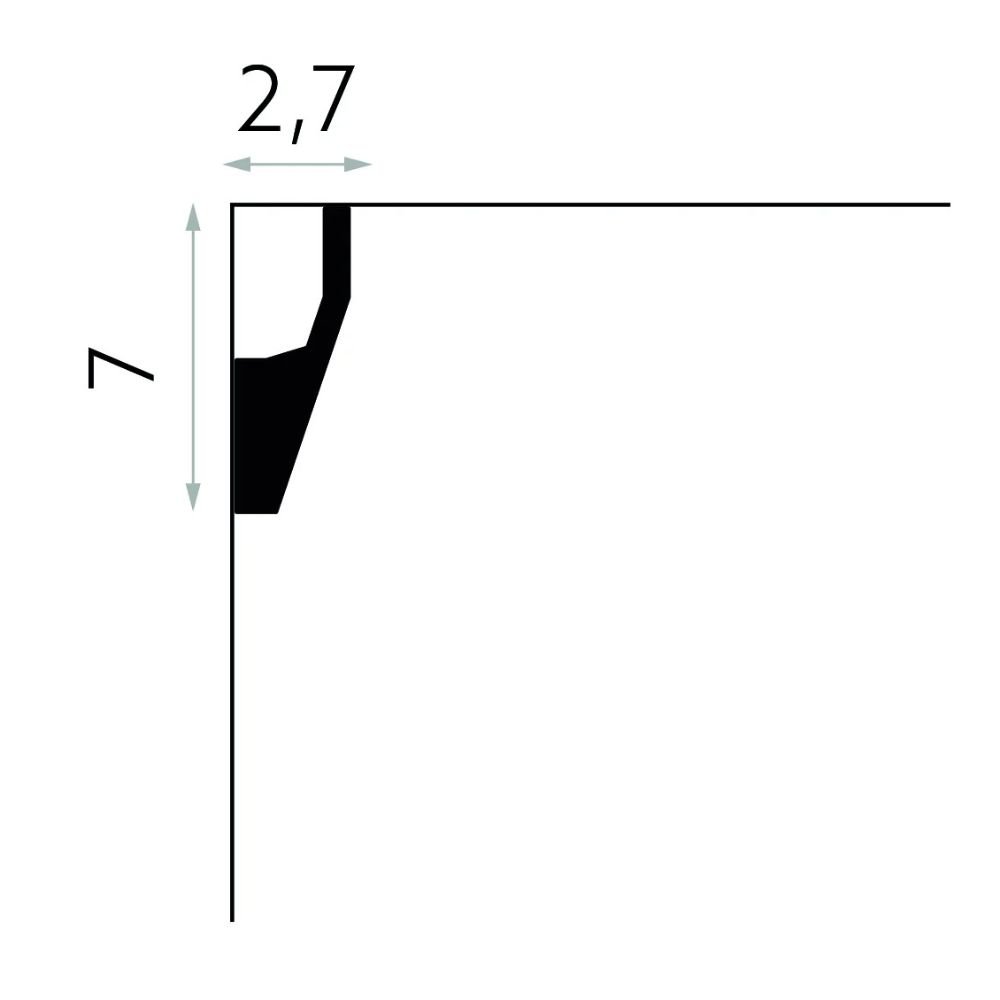 Bagetai luboms MD118 – tai minimalistinio dizaino ir pažangių technologijų derinys, sukurtas moderniam ir estetiškai išbaigtam interjerui. 7 cm aukščio ir 2,7 cm pločio profilis subtiliai sujungia sieną su lubomis, suteikdamas erdvei švarų, architektūriškai tikslų ir vizualiai lengvą perėjimą.