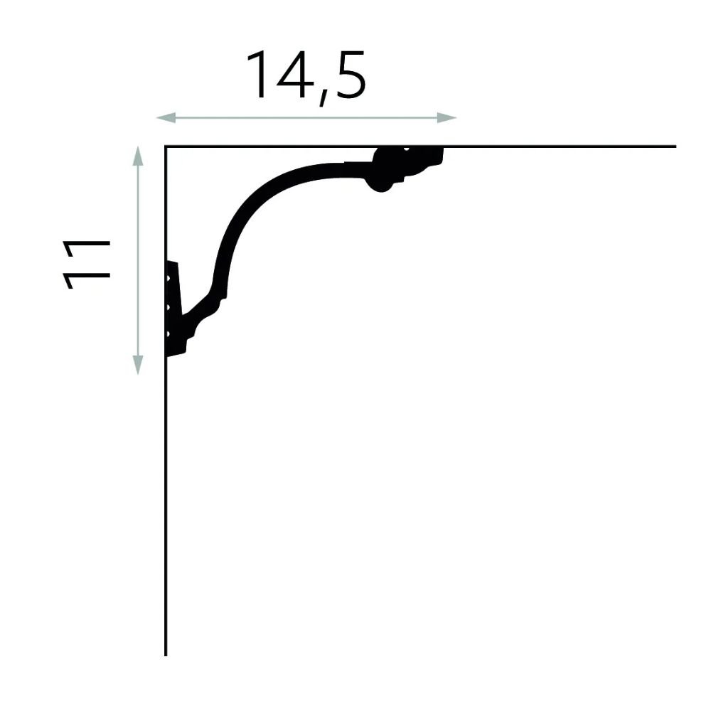 Bagetai luboms MD156 – tai išskirtinio dizaino, plataus ir architektūriškai ekspresyvaus profilio sprendimas, skirtas sukurti solidų ir vizualiai stiprų lubų užbaigimą. 11 cm aukščio ir net 14,5 cm gylio modelis formuoja aiškų, gilų šešėlio ir šviesos perėjimą, todėl tampa ne tik dekoratyvine detale, bet ir svarbiu interjero akcentu. Šis profilis ypač tinka erdvioms patalpoms, aukštesnėms luboms bei projektams, kuriuose siekiama išlaikyti proporcingą ir reprezentatyvų vaizdą.