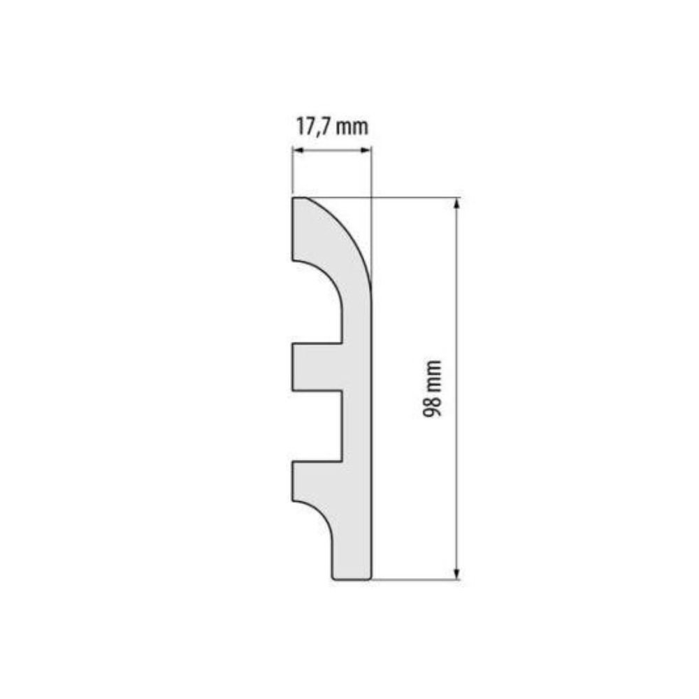 Dažomos polistireno grindjuostės LPC-19 „Elegance” – tai universalus ir praktiškas sprendimas, skirtas estetiškam grindų ir sienų sujungimo užbaigimui. Šis modelis pasižymi 98 mm aukščiu, kuris leidžia išlaikyti gerą balansą tarp subtilumo ir vizualinio išraiškingumo, todėl grindjuostės puikiai tinka tiek moderniems, tiek klasikiniams interjerams. Dėl savo proporcijų jos dažnai pasirenkamos tiek naujos statybos būstuose, tiek renovuojamuose namuose.