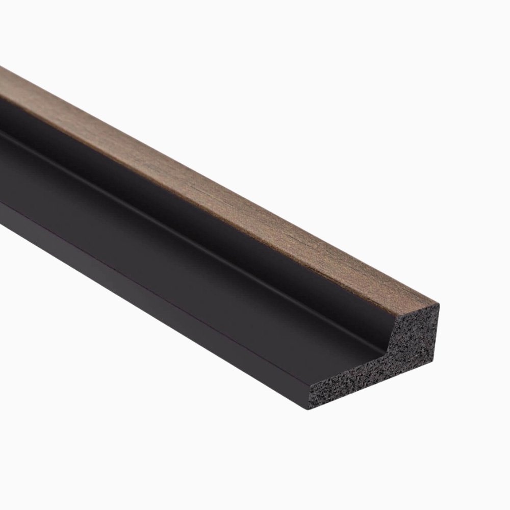 Dešinysis lamelių užbaigimas Dark Oak L0104RT – tai 200 cm ilgio apdailos profilis, skirtas L0104T lamelių dešinės pusės užbaigimui. Šis elementas leidžia preciziškai uždengti atvirą lamelių kraštą, suteikdamas sienai vientisą, estetišką ir profesionalų vaizdą.
