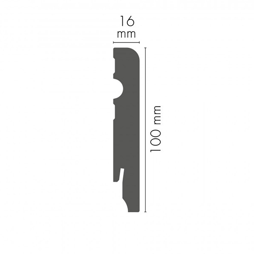 Šis modelis ne tik atlieka dekoratyvinę funkciją, bet ir saugo sienų apačią nuo mechaninių pažeidimų, siurblio ar baldų paliekamų žymių. Galinėje dalyje suformuotas tarpas leidžia paslėpti kabelius, taip išlaikant švarų ir vientisą sienų vaizdą be matomų laidų.