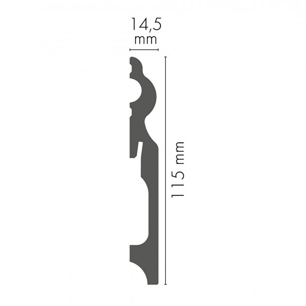 115 × 14,5 × 2200 mm matmenų grindjuostės ne tik užbaigia grindų dangą, bet ir padeda paslėpti smulkius nelygumus ties sienų ir grindų sandūra bei laidus galinėje grindjuostės dalyje. Tai praktiškas ir estetiškas sprendimas, kuris interjerui suteikia tvarkos pojūtį ir išbaigtą vaizdą.