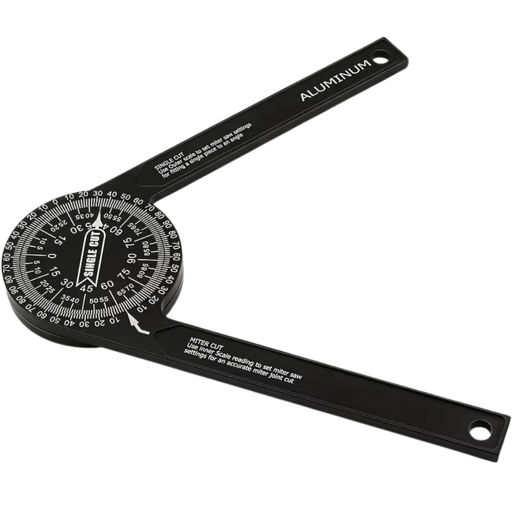 Kampomatis – tikslus 360° kampų matuoklis iš aliuminio lydinio, skirtas medžio apdirbimo ir „DIY“ darbams. Atsparus rūdims, patvarus ir užtikrinantis 0,1° paklaidos matavimo tikslumą.