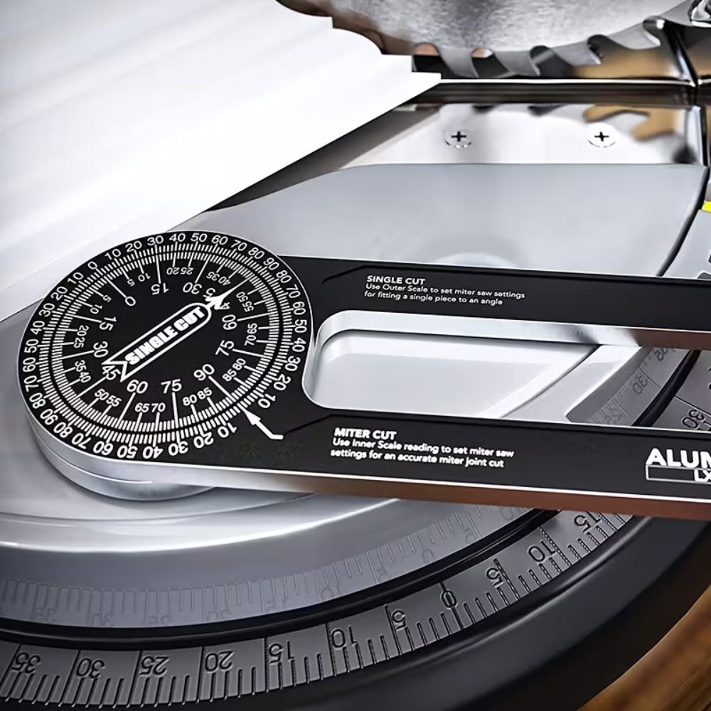 Kampomatis – tikslus 360° kampų matuoklis iš aliuminio lydinio, skirtas medžio apdirbimo ir „DIY“ darbams. Atsparus rūdims, patvarus ir užtikrinantis 0,1° paklaidos matavimo tikslumą.