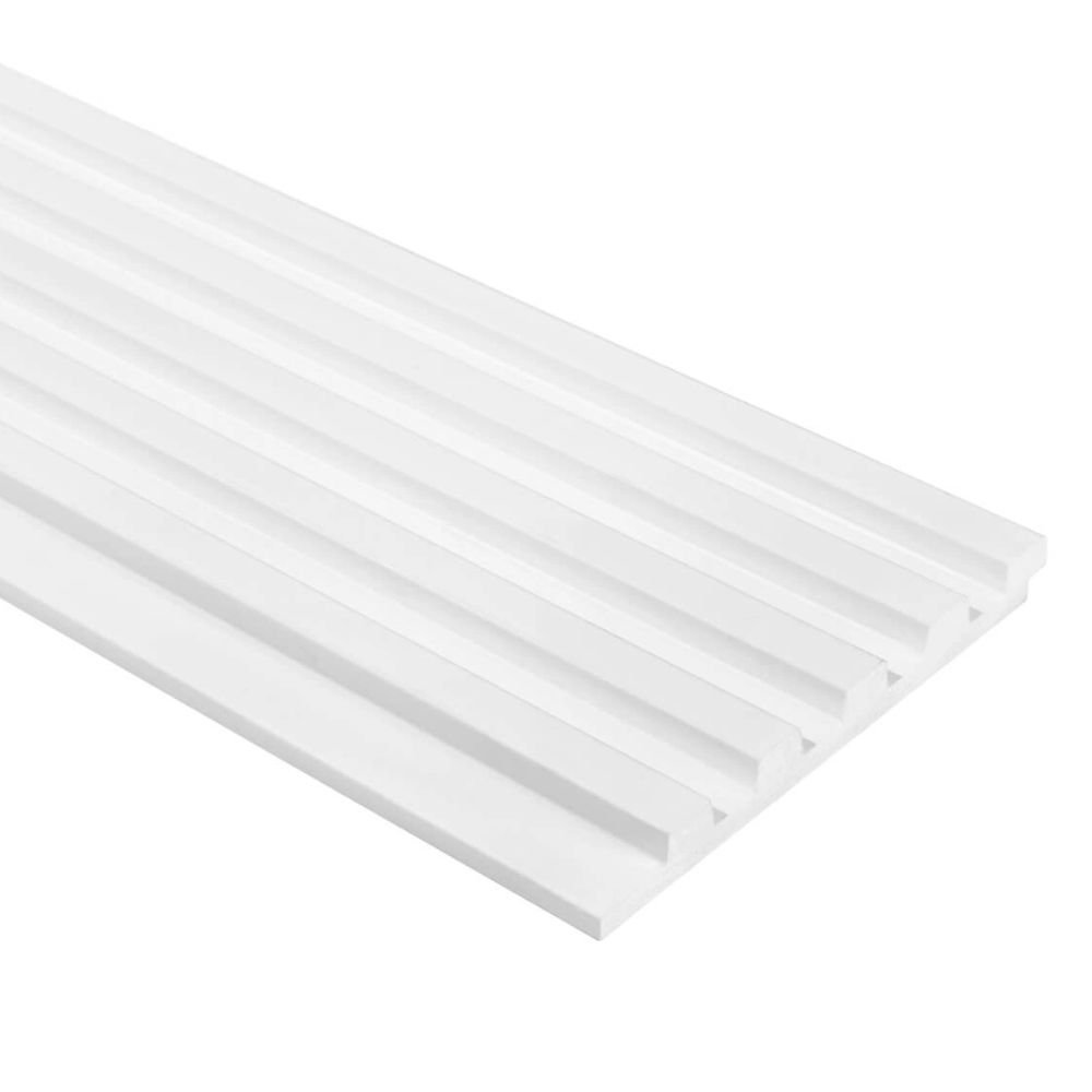 Lamelė „White L0101T” Stretto – dekoratyvinės sienų lamelės, suteikiančios interjerui modernų vertikalių linijų efektą. Atsparios vandeniui, UV spinduliams ir įbrėžimams, gali būti dažomos.