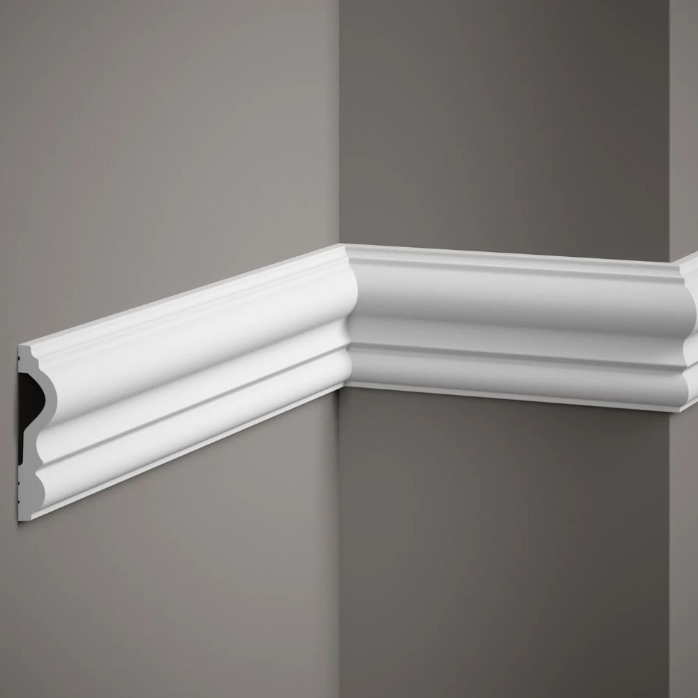 Moldingai sienoms MD338 „PolyForce“ 200×8×2,1 cm – tai išraiškingas, 8 cm aukščio dekoratyvinis profilis, skirtas interjerams, kuriuose norima aiškios struktūros ir klasikinės elegancijos. Subtilus, bet ryškus frezavimas suteikia sienoms gylio ir architektūrinio charakterio, todėl šis moldingas puikiai tinka tiek kaip pavienis akcentas, tiek kaip didesnių sienų kompozicijų dalis. Jis dažnai naudojamas vizualiai dalijant sieną – pavyzdžiui, išryškinant apatinę sienos dalį ar kuriant dekoratyvinius rėmus.