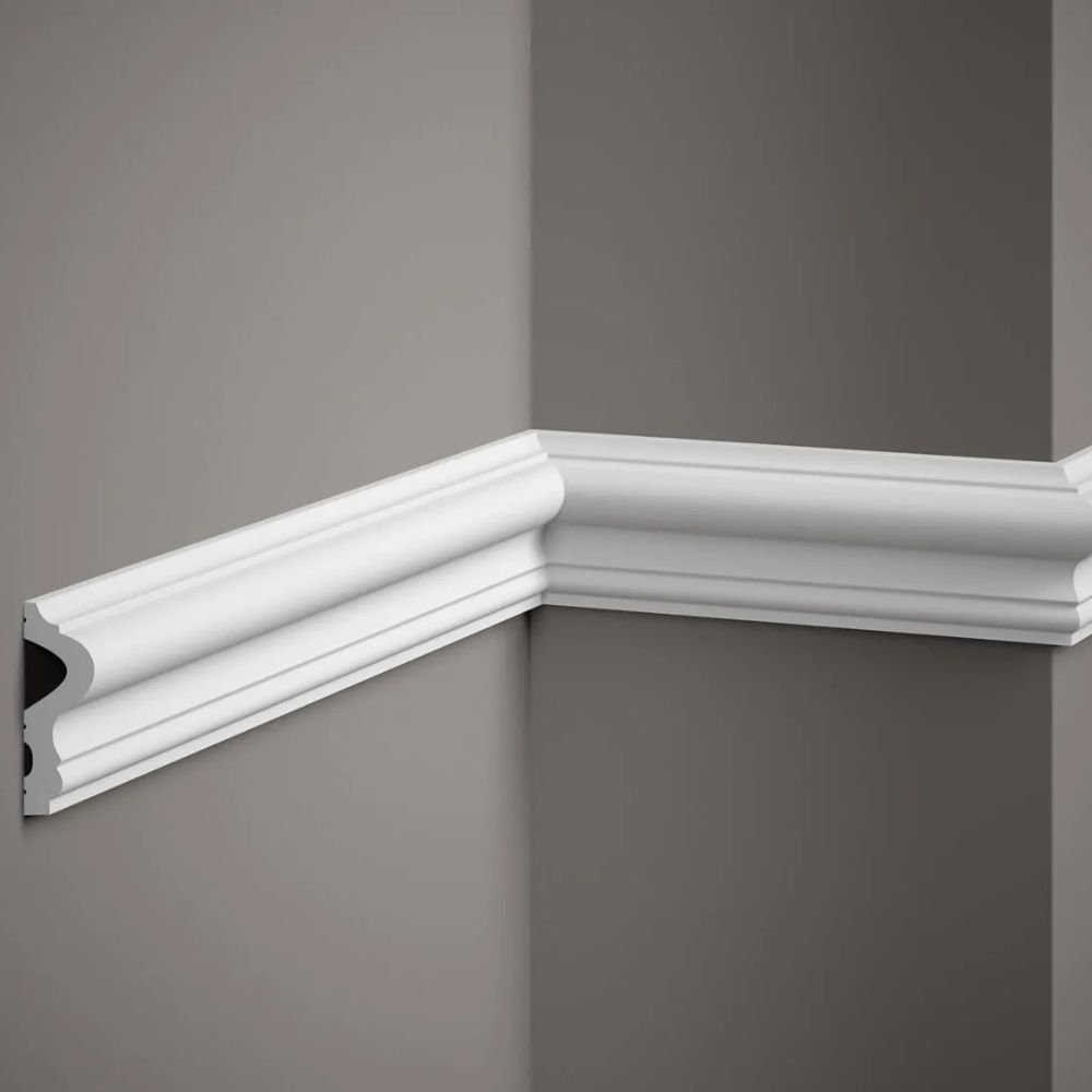 Moldingai sienoms MD346 „PolyForce“ 200 × 6,1 × 2,3 cm – tai išraiškingas, trimatis dekoratyvinis profilis, skirtas interjerams, kuriuose svarbi architektūrinė detalė ir solidus estetinis įspūdis. Išgaubta forma ir iš abiejų pusių subtiliai frezuota apdaila suteikia sienoms gylio bei vizualinio ritmo. Šis moldingas puikiai tinka montuoti išilgai sienų, formuoti dekoratyvinius rėmus paveikslams ar veidrodžiams bei derinti su siauresnėmis juostomis, kuriant vientisas sienų kompozicijas.