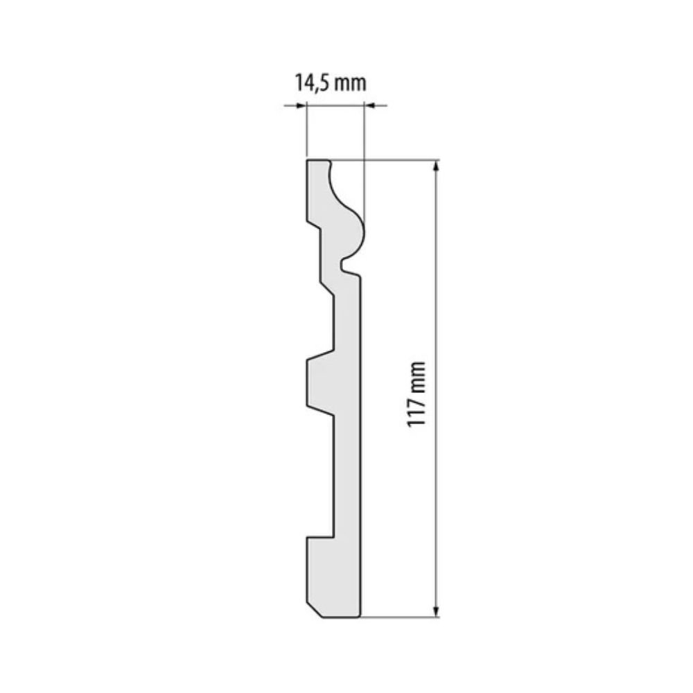 Polistireno grindjuostės balta LPC-22 „Elegance” – tai universalus pasirinkimas ieškantiems balanso tarp estetikos, funkcionalumo ir kainos. Dėl 117 mm aukščio šis modelis puikiai tinka tiek moderniems, tiek klasikiniams interjerams, subtiliai užbaigdamas grindų ir sienų sandūrą bei suteikdamas patalpai tvarkingą, išbaigtą vaizdą.