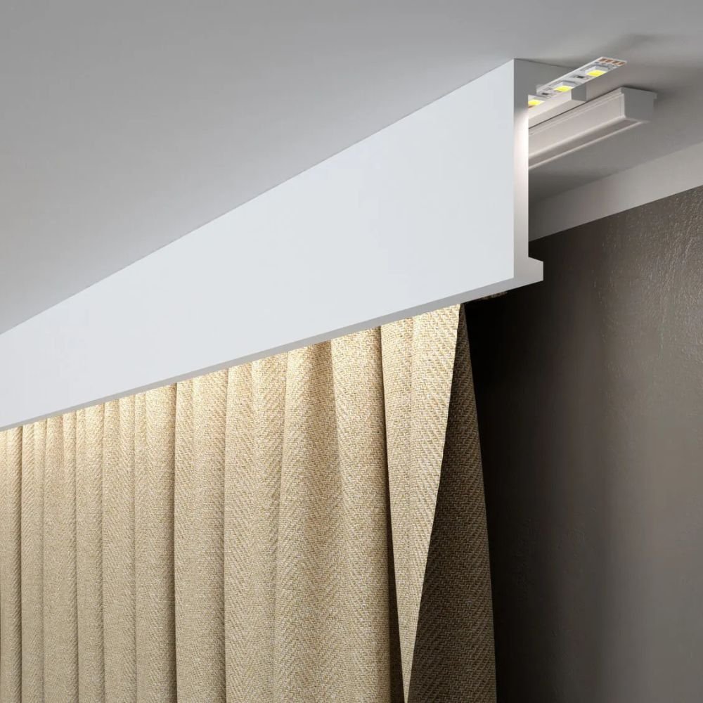 Profilis užuolaidoms QL026T – tai šiuolaikiškas ir vizualiai švarus sprendimas, leidžiantis estetiškai paslėpti užuolaidų bėgelį ar karnizą be sudėtingų gipso kartono konstrukcijų. Minimalistinė forma sukuria aiškų, tvarkingą lubų perėjimą ir suteikia interjerui architektūrinį vientisumą. Tai sprendimas, kuris ne tik maskuoja techninius elementus, bet ir tampa subtilia dizaino detale.